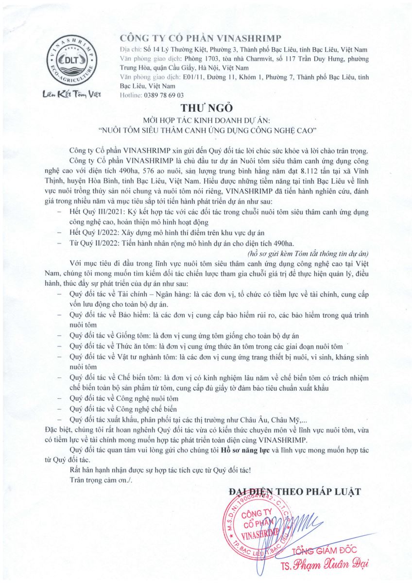 Công ty cổ phần VinaShrimp xin được gửi tới toàn thể quí vị lời chào trân trọng và cảm ơn sâu sắc vì sự tin tưởng và hợp tác toàn diện trong thời gian qua.